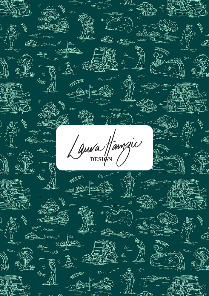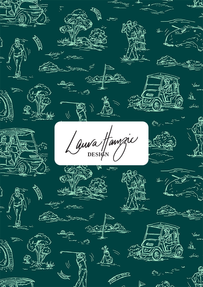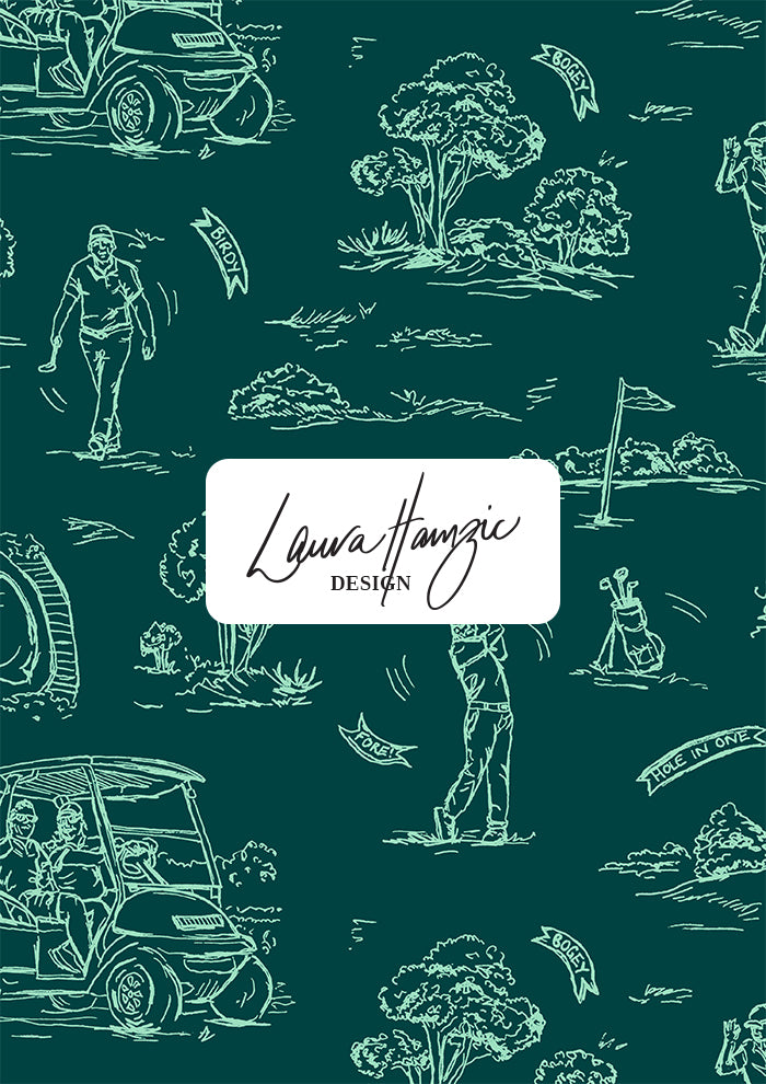 Created for my golf-loving husband — the kind of bloke who’ll tee off rain, hail or shine — Golfing Days celebrates the camaraderie, chaos and charm of a day on the course. Hand-drawn illustrations capture golfers in all stages of play: lining up the perfect shot, stuck in the bunker, splashing into the pond, or sinking that dream hole-in-one. A tribute to the highs, lows and laughs of a good round with the boys.