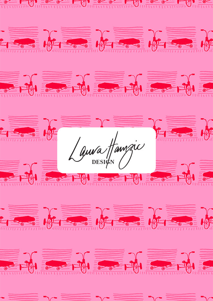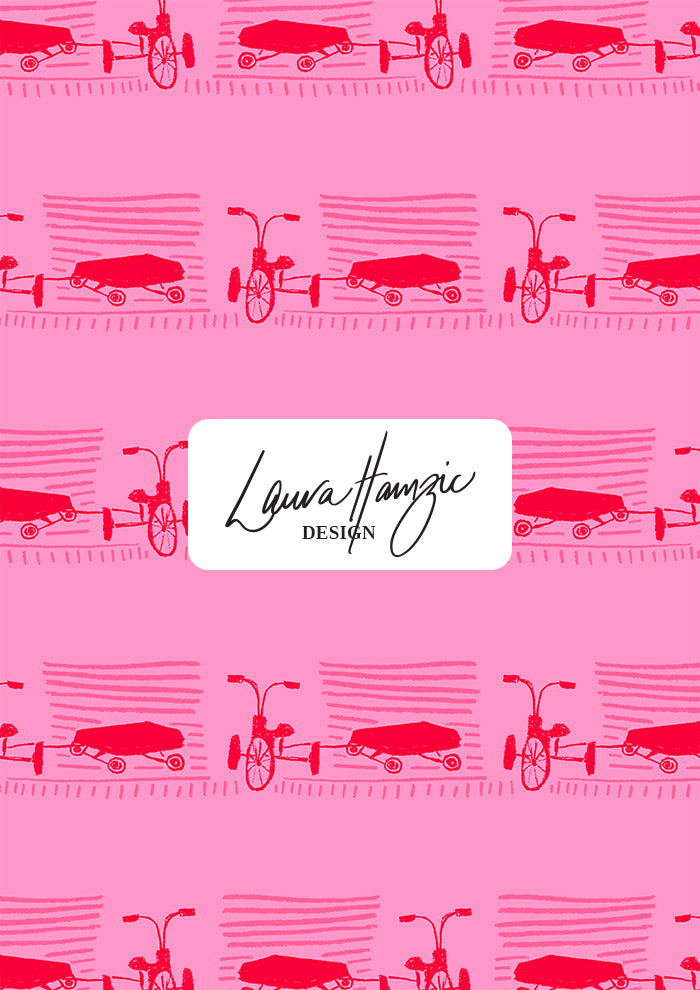 Trike Tracks is a playful and nostalgic pattern that captures the joy of childhood adventures. Inspired by the trusty red trike and wagon that carried you through endless outdoor explorations, this design evokes memories of racing down the driveway or through the garden. The playful lines and slightly irregular shapes mirror the sense of fun and excitement that came with each turn of the pedals, leaving behind a trail of memories. Trike Tracks is a perfect design for anyone who loves the simplicity and joy of childhood play and wants to add a touch of whimsical energy to their brand.